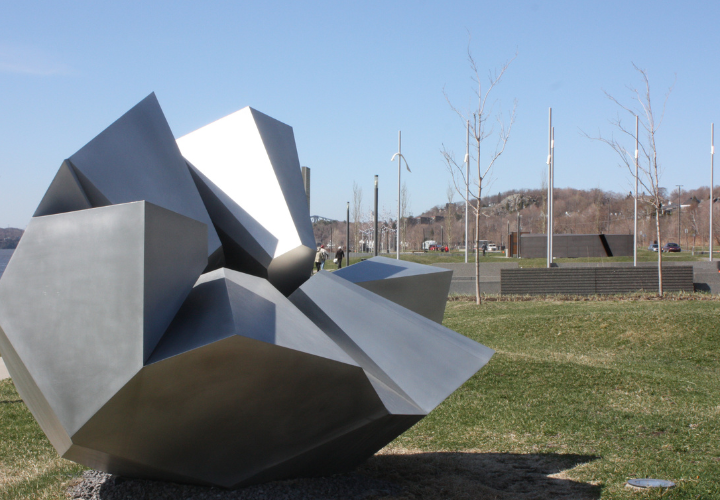 Réalisé en 1997 par l’artiste Jean-Pierre Morin, ce polyèdre convexe irrégulier, mesurant 2,5 mètres et composé d’aluminium, offre une géométrie inspirante.